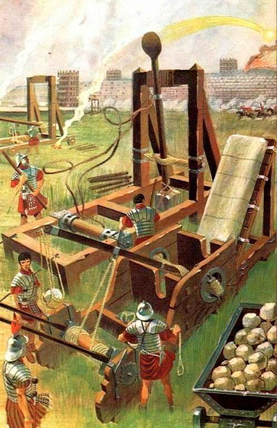 La catapulta romana era un macchinario che aveva la funzione di scagliare grosse pietre verso i nemici.